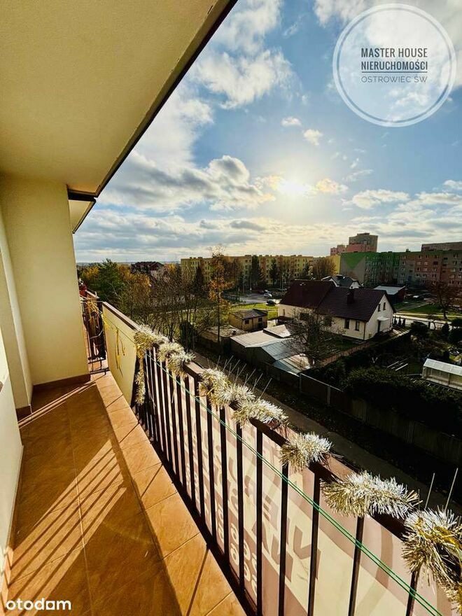 - Duży balkon z widokiem na osiedle i domki jednorodzinne